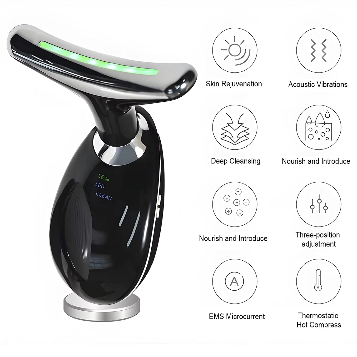Featuring three intensity levels, this device allows personalized skincare routines to target wrinkles, fine lines, and double chin fat. The gentle yet firm vibrations enhance blood circulation and lymphatic drainage, helping to detoxify pores, reduce puffiness, and promote a firmer, more youthful complexion.